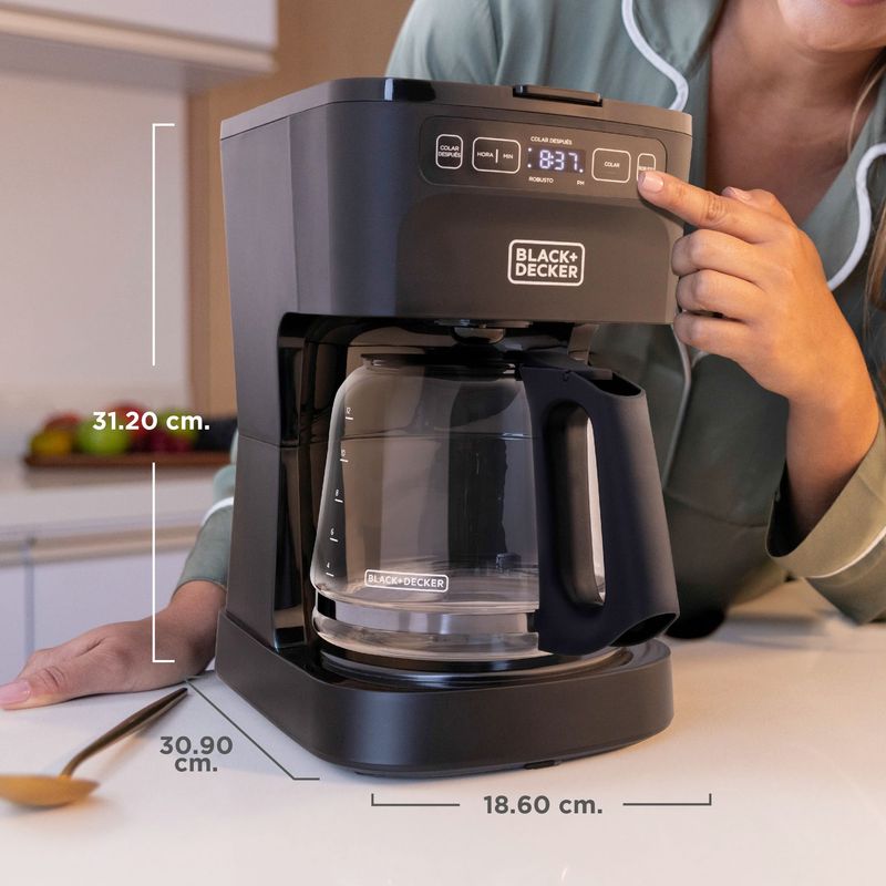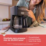Prepara ahora o después- Café caliente y delicioso listo cuando tu estes. Prepara hasta 12 tazas Filtro permanente incluido Selector de intensidad Tecnología Sneak-A-Cup- detiene el flujo de café para que puedas servir una taza sin esperar Diseñada para preparar mas de 20,000 tazas Rociador de agua con Tecnología Vortex- distribuye el agua uniformemente para máximo sabor Controles programables de un solo toque para colar ahora o después