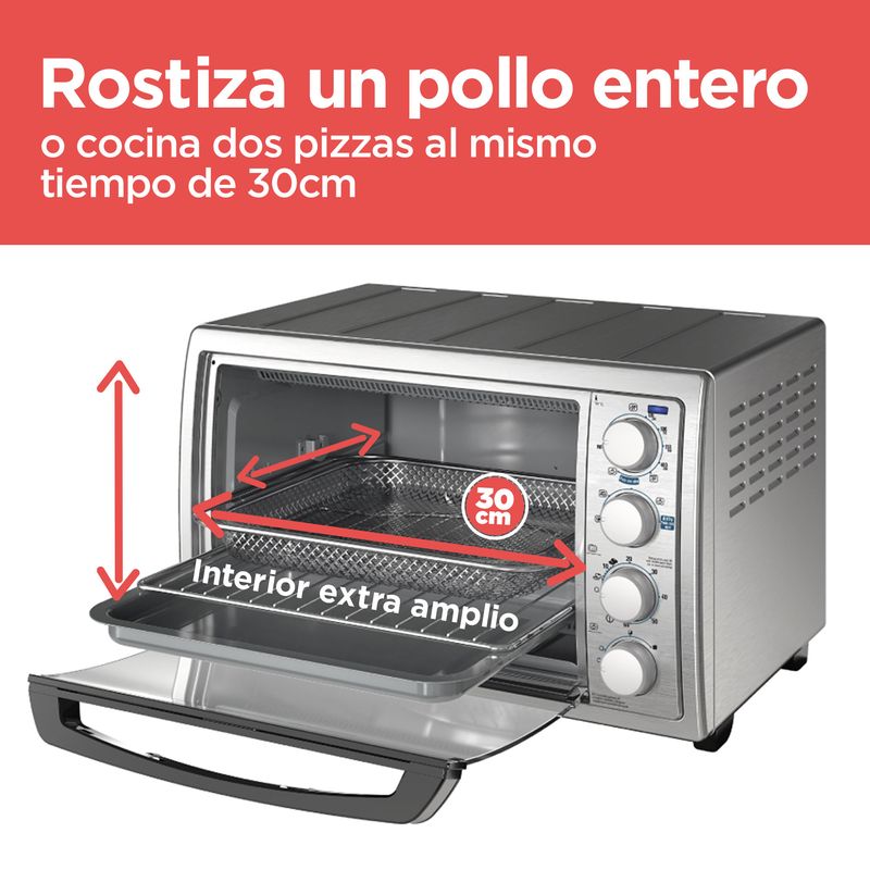 • Incluye charola para hornear, asar, freir y accesorios para rostizar