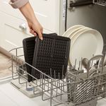 Cocinar el desayuno y almuerzo para su familia es conveniente con el diseño 3 en 1. Comience preparando waffles, luego invierta las placas de Coción y doble hacia atrás la parte superior con bisagra para abrirla en posición plana con 2 placas de plancha que le permiten cocinar huevos y tocino. Cocinar es fácil con las canales de grasa que drenan los residuo de grasa de los alimentos. Para el almuerzo, prepare sándwiches tostados para satisfacer cualquier apetito.